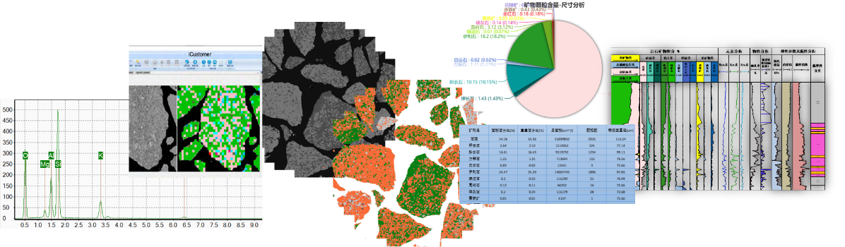 包括制样、矿物成分图、成分百分比、背散射图像、孔隙、力学参数 |