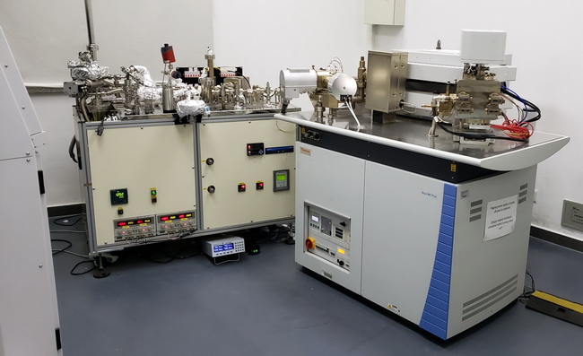 Helix MC Plus稀有气体质谱仪配有5组接收器,可实现Ar同位素的多接收测量,其中一组为高分辨率,分辨率可达1500,可在测量Ne时将40Ar2+和20Ne完全分开。对Ar灵敏度大于1×10-3A/Torr。配备有CO2激光器,准分子激光器和多坩埚双真空高温炉,主要用于地外样品的稀有气体同位素测试。