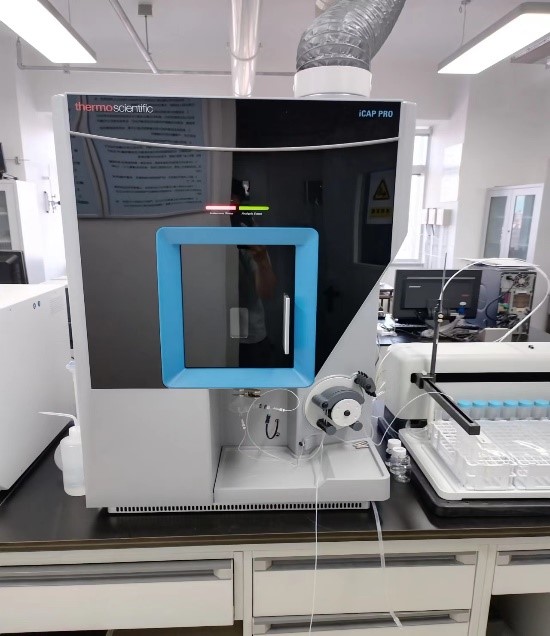 美国ThermoFisher Scientific iCAP PRO型电感耦合等离子体发射光谱仪(ICP-OES)采用中阶梯光栅-棱镜交叉色散光学系统,其光学分辨率在257.610nm或202.030nm处<7pm,波长范围为167.021-852.145nm,采用电荷注入检测器 CID821。仪器提供水环境样品中主量、微量元素的定性、定量分析。