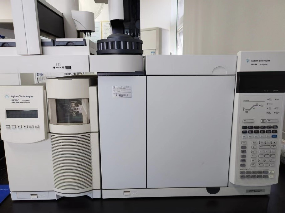 美国Agilent 7890A-5975C型气相色谱/质谱联用仪,配有ECD检测器,扫描范围:1.6-1050amu,质量轴稳定性:0.1amu/48小时,扫描速率:最高12500amu/s,灵敏度:EI全扫描1pg八氟萘信噪比400:1。仪器适用于沸点较低、热稳定性好的有机物,能对各种量级有机化合物进行分析鉴定,并提供各种有机化合物的定性、定量数据及系列图谱(包括总离子流图、色谱图、质量色谱图、质谱图)。