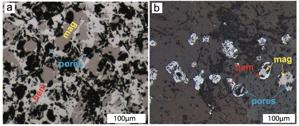 针对上述问题,澳大利亚莫纳什大学的邢延路(Yanlu Xing)博士、Joel Brugger教授及其合作者设计了磁铁矿-赤铁矿转变反应在含不同REE元素的富氧和无氧溶液里的水热实验研究,创新性得提出Ce元素在磁铁矿转变为赤铁矿过程中,扮演着催化剂作用,无需氧化剂即可生成赤铁矿,同时该催化反应极大地提高了赤铁矿生成物的孔隙度,进而增强流体的活动性。该研究共设计了多组对比试验