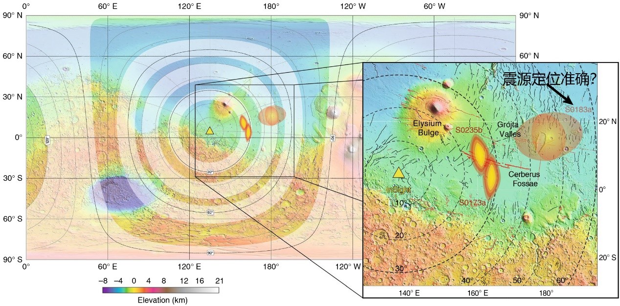 Cerberus Fossae裂隙附近,这可能暗示火震事件可能是局部构造应力集中以及内部冷却引起的。目前火星内部结构的探测处于初期,震源机制可能另有解释,如陨石撞击、流体迁移等。