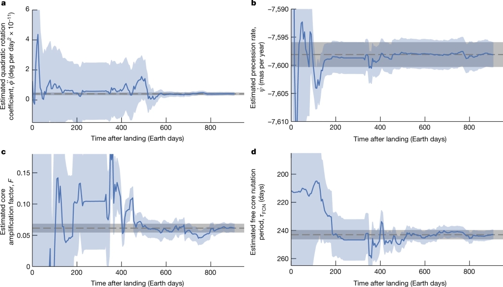 Le Maistr S, Rivoldini A, Caldiero A, et al. Spin rate and deep interior structure of Mars from InSight radio tracking[J]. Nature, 2023.(原文链接)