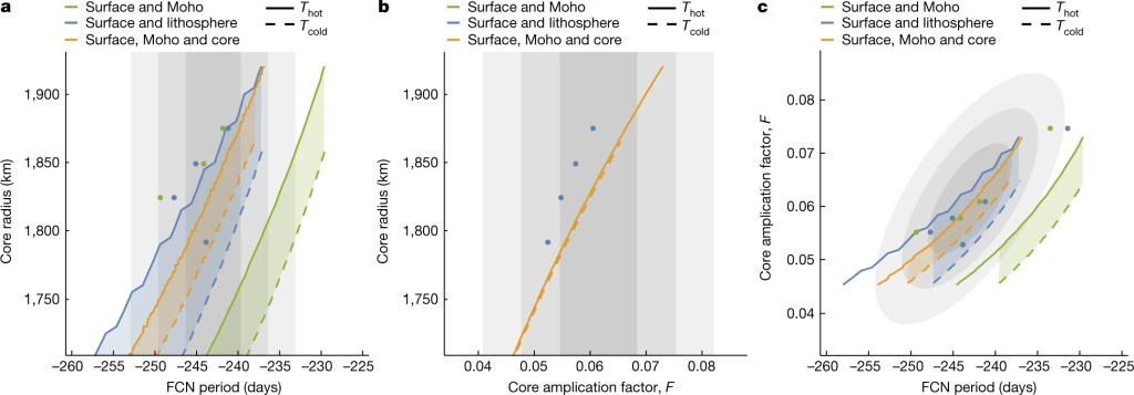 图3 火星内部圈层结构与火星核自由章动参数函数关系(Le Maistre et al., 2023)