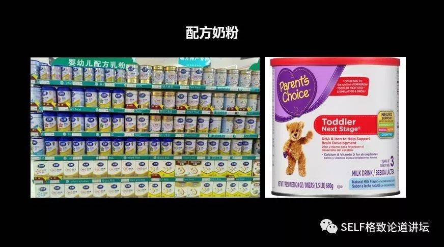 还有配方奶粉,大家一定奇怪,为什么配方奶粉要分成一段、二段、三段?为什么奶粉中还有DHA、ARA这么一堆听起来莫名其妙的东西。