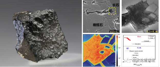 2011年,提森特陨石(Tissint)在摩洛哥降落,它在降落的时候就被人们发现了,所以它基本上没有受到地球有机物的污染,给我们提供一个非常好的机会来研究火星是不是曾经具有有机物或者生命。经过实验室分析发现,这块样品里面确实含有很多富碳的东西,可能是和生命相关的,这是我们目前为止能找到的最接近火星是否有生命的答案的证据。
