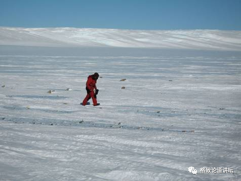 所以就有了图片中这块样品,还有它后续的一个新闻报道。去南极找陨石真是很有意思的一件事情。