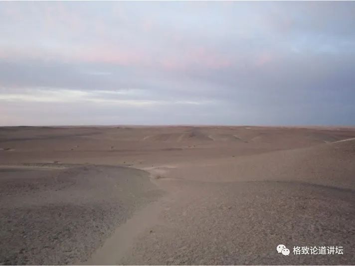 这是我们当时去哈密地区的照片。相对于南极来说,去沙漠地区会比较容易。我们开着车,吃着火锅,唱着歌可能就去了。这就是当时的地形,这个地形对于戈壁来说非常普遍。但是可以看到底下山与山之间还是有一个洼地的,这个洼地里边可以看到有很多车跑过的痕迹。