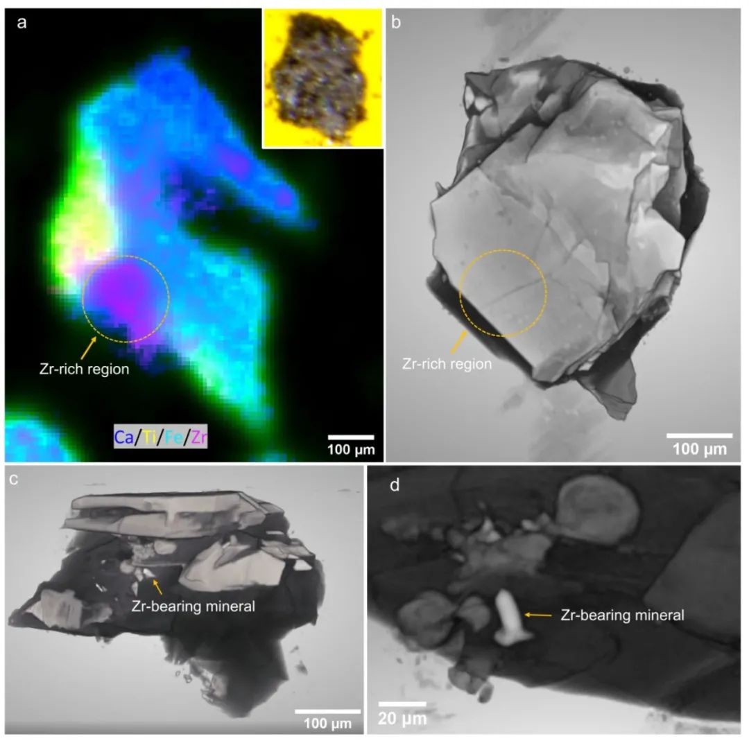 图4 μXRF/3D-XRM联用精准定位目标样品中的含锆矿物