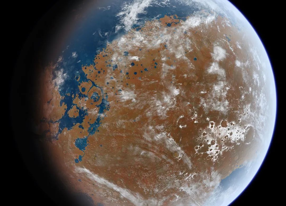 你几乎可以不加修改地,将地球形成早期那些场景套用在这个时候的火星上——湿润且浓厚的大气层中电闪雷鸣,陨石划过天空,拖着浓郁的尘烟;大地在颤抖,火山在轰鸣,川流不息的大河汇入波涛汹涌的大海,在火星的表面塑造出血管一般的沟壑,昭示着这颗星球勃发的生机。