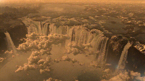再次想象这样一个场景——千里冰封的群山之中,冷不丁突然一座火山爆发。顿时,银瓶乍破水浆迸!方圆百里的冰雪同时融化,汇成这太阳系最壮观的洪水,向着悬崖峭壁直泻而下!