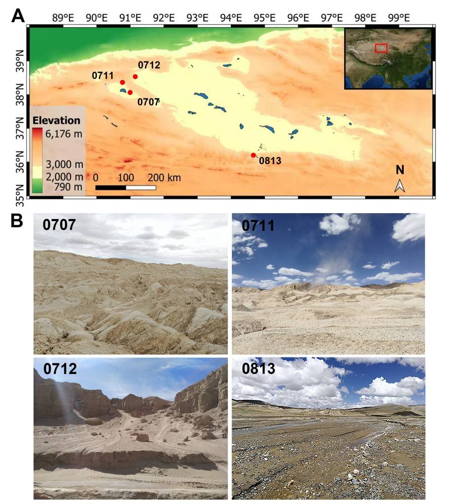 柴达木盆地位于我国青藏高原北部,它是世界上最干旱、海拔最高的荒漠之一。由于青藏高原的隆升,柴达木盆地的气候自更新世以来发生了剧烈变化,由原先的巨大湖泊逐渐演变为现今极端干旱、紫外辐射高、昼夜温差大的荒漠。现今柴达木盆地的干旱度由东南向西北逐渐增强,其环境可以类比火星诺亚纪晚期至西方纪早期时的环境。此外,柴达木盆地发育了众多与火星地貌特征类似的类火星地貌,如冲沟、冲积扇、泥石流、雅丹、多边形地貌等。研究柴达木盆地的微生物多样性及其适应机制,有助于更好地认识地球生命耐受极端环境的生存策略、火星的过去和现在是否可能存在生命等天体生物学前沿科学问题。