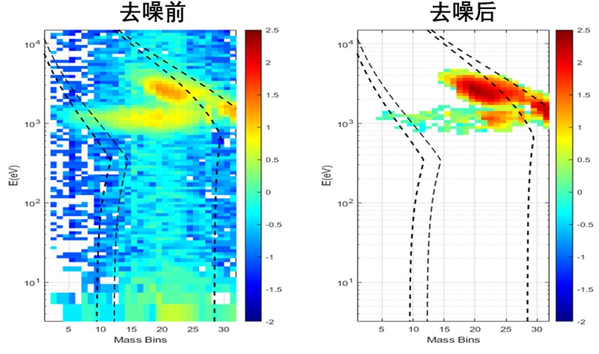 图3 火星快车的原始测量离子数据(左)和去噪后的数据(右)