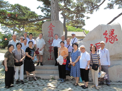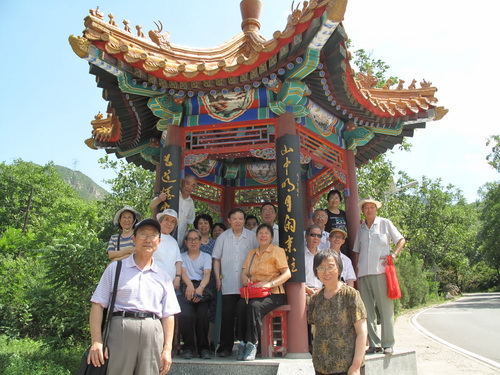 同志们在灵感宫门前宽阔的平台上,尽情远眺,享受着群山的灵气,呼吸着群山制造的新鲜空气,不由自主的对着大地高喊“我来了”,“我们来啦”,以抒发热爱大自然、热爱这个时代的情怀。在灵感宫北面的长形凉亭里,沐浴着山间吹来的习习凉风,合影留念,留下自己美好的回忆。年龄最长的离休干部唐生菁感慨地说“要热爱生活,珍惜生活,要关心我们的身体,也要关心我们的环境”同志们三三两两地谈着心德,谈着感想。年龄最小的陈皎芬同志是个活跃人物,她除了大嗓门说笑,唱越剧唱歌外,还搀扶年老的同志。