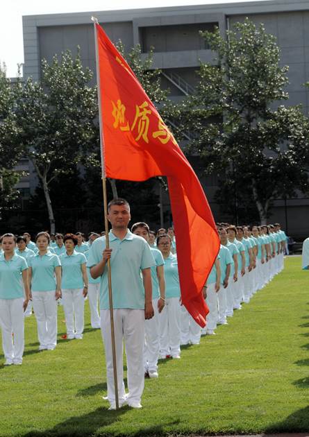 早晨7点30分京区各代表队汇聚在人大体育场进行赛前集中演练。9点30分随着何岩主席等工会领导的到来,展示活动正式开始。千名运动员身着红、黄、兰、白、粉五种颜色的服装组成五个协作片方阵,精神抖擞,伴随着富有青春活力的旋律,以整齐有序的队列、矫健有力的动作,进行了精彩的广播体操展示。那是一片让人眼前一亮的色彩,在旭日东升的体操场上呈现出靓丽的风景线,让人感受到生命、运动与大自然的交融与律动。我所代表队精神饱满、队列整齐,把广播体操的力与美完美地结合在一起,充分展示出我们良好的精神风貌和团结向上的团队凝聚力。