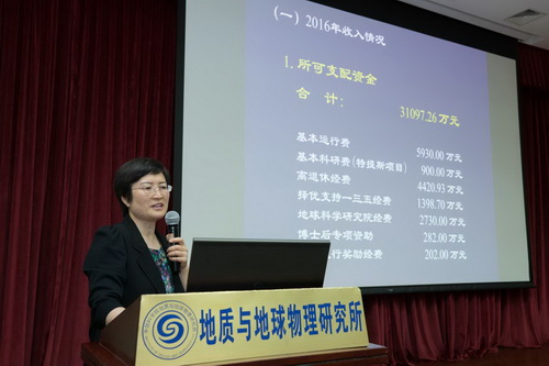 2017年7月11日,800彩票第四届职代会(工会)第三次全体会议在D3楼报告厅召开,正式代表和列席代表80多人参加了会议,上午9点,工会主席钟华同志宣布大会开始。底青云同志、王彦飞同志、张宝林同志分别作了2016年度研究所财务报告、工会工作报告和2016年工会财务报告。