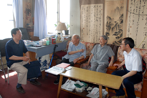 在庆祝中国共产党成立90周年前夕,我所离退休第一党支部用三个半天的时间,冒着酷暑,上门看望了十三位年龄在80岁以上的党员同志,他们的家住得很分散,分布在中关村、城区、北郊、望京及昌平远郊等地。所党委副书记钟华、党办主任石艳红同志一同前往看望了已102岁高龄的党员崔克信同志和解放后首批来所工作的周景良同志。上门慰问时,我们还给大家送去了建党90年纪事《光辉的历程》一书,并通报了所党委及支部近期工作和活动情况,勉励大家好好保养身体,健康长寿。十三名高龄党员同志,对所党委和支部的关心和问候表示感谢。他们表示要不忘党的宗旨,根据自己的自身条件,力所能及地奉献余热。