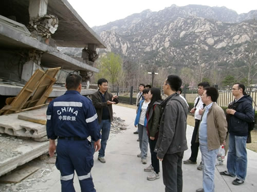 下午到达春游的第二站——位于凤凰岭的“国家地震紧急救援训练基地”。曾经参加过汶川地震救援的何教官接待了我们。他首先带领我们体验震后废墟,进入了一座整体倾斜部分坍塌的建筑物里。很快就有了晕眩的感觉,驻足而立随时都有摔倒的可能。大家只能紧把扶手,顺着变形的楼梯艰难前行。想想救援人员正是在这样的坚险境地中顽强搜救,大家便不由得对他们的工作肃然起敬。何教官又带我们参观了应急装备库,介绍了每种器械在应急救援中的作用,比如承重2吨的救援绳、承重50吨的气垫、以及强力破拆器械等。随后观看了4D动感电影,仿佛置身于地震现场,身临其境般的体会到了地震发生时地动山摇,海啸肆虐,房倒屋塌的场景。最后大家就防震自救的问题与何教官进行了讨论,何教官还当场演示了几种用于救援和逃生的绳结打法。