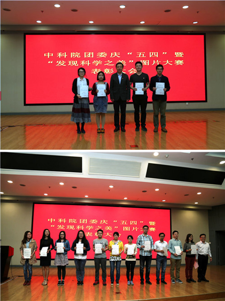 大会还对中科院团委、中科院青联、中科院科学传播局联合组织开展的“发现科学之美”图片大赛获奖个人和单位进行了表彰。此次活动为期两个月,共评选出特别奖5幅(我所刘嘉麒院士的作品获奖),一等奖6幅(我所职工任晖的作品获奖),二等奖16幅,三等奖33幅(我所职工任晖、柴立晖的作品分别获奖),优秀奖103幅,评选出优秀组织奖获得单位23个(我所团委获此奖励)。