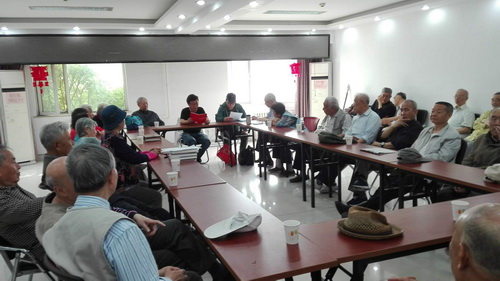 离退休第二支部年龄80岁以上的党员同志超过半数,有些同志体质较弱,到研究所参加会议和活动比较困难。经多方协商,华严北里社区党委同意今后利用社区会议室开展活动。本次会议就在社区会议室举行,由于会场与住家距离近了,很多老同志都积极参加。会议之前社区党委副书记曹雷同志与全体党员见面,热烈欢迎老同志们的到来。