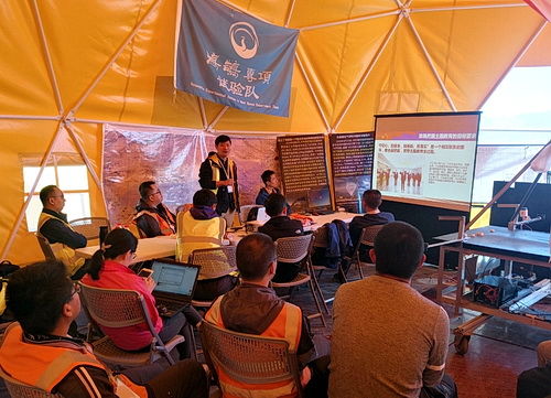 魏勇向实验队的党员们深刻讲解了“不忘初心、牢记使命”主题教育重大意义、目标要求,并结合“鸿鹄专项”科学与工程相结合的探索实践,向大家深入阐述了专项在探索科学与工程融合发展之路、多学科交叉融合、科教融合发展和支撑行星一级学科建设方面肩负的使命。来自空间信息创新研究院、高能物理研究所、大气物理研究所和我所的30多位党员群众参加了这次野外党课。
