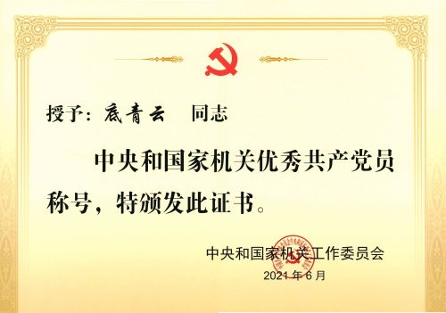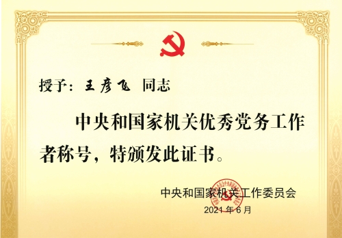 中央和国家机关优秀共产党员、优秀党务工作者和先进基层党组织表彰大会6月24日在北京召开,共有349名优秀共产党员、262名优秀党务工作者、309个先进基层党组织受到表彰。我所底青云研究员、王彦飞研究员受到表彰,分别被授予“优秀共产党员”和“优秀党务工作者”称号。