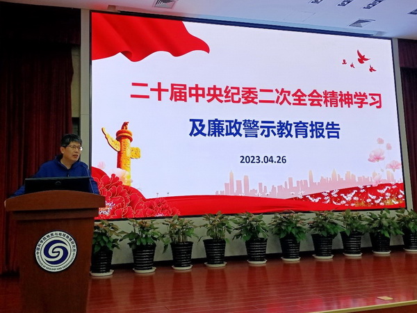 4月26日,机关党支部在地3楼二层报告厅组织召开二十届中央纪委二次全会精神学习及廉政警示教育大会。会议邀请所党委副书记、纪委书记杨俊成作报告,管理服务部门40余人参会。
