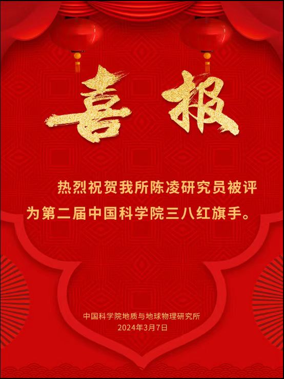 我单位的陈凌研究员荣获本届“三八红旗手”称号。陈凌是我所杰出女科学家的代表,她潜心研究,在地球深部结构与性质的地球物理探测和多学科综合研究领域取得了系统性创新成果。她开拓创新、顽强拼搏、攻坚克难的精神,是我们学习的榜样,激励我所广大女职工立足岗位、更创佳绩。