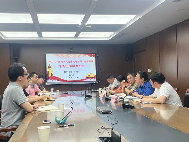 2024年5月21日上午,科技平台第一党支部在研究所地1楼第三会议室召开党员大会,集体学习《中国共产党纪律处分条例》。研究所党委书记黄向阳、科技平台处处长王中兴应邀出席会议,支部党员、技术骨干共计35人参加会议。