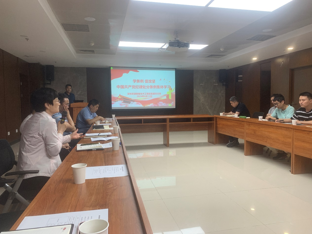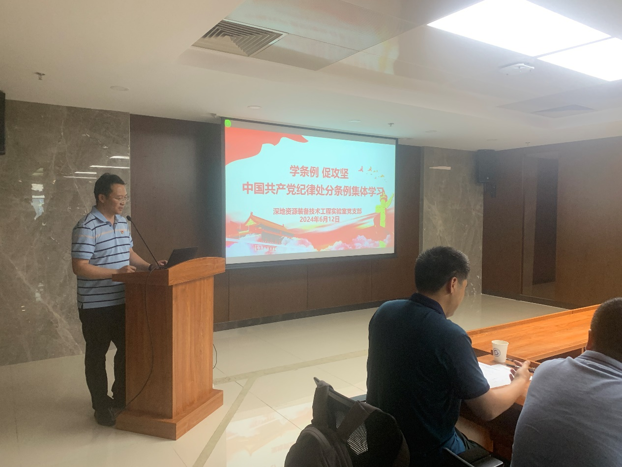为深入开展党纪学习教育,加强党的纪律建设,2024年6月12日下午,深地资源装备技术工程实验室党支部召开党员大会,深入学习《中国共产党纪律处分条例》,组织开展了“学条例 促攻坚”大讨论。研究所党委委员、所长底青云,党支部书记张文秀、全体支委、支部党员和积极分子共计36人参加了会议,会议由党支部副书记杨永友主持。