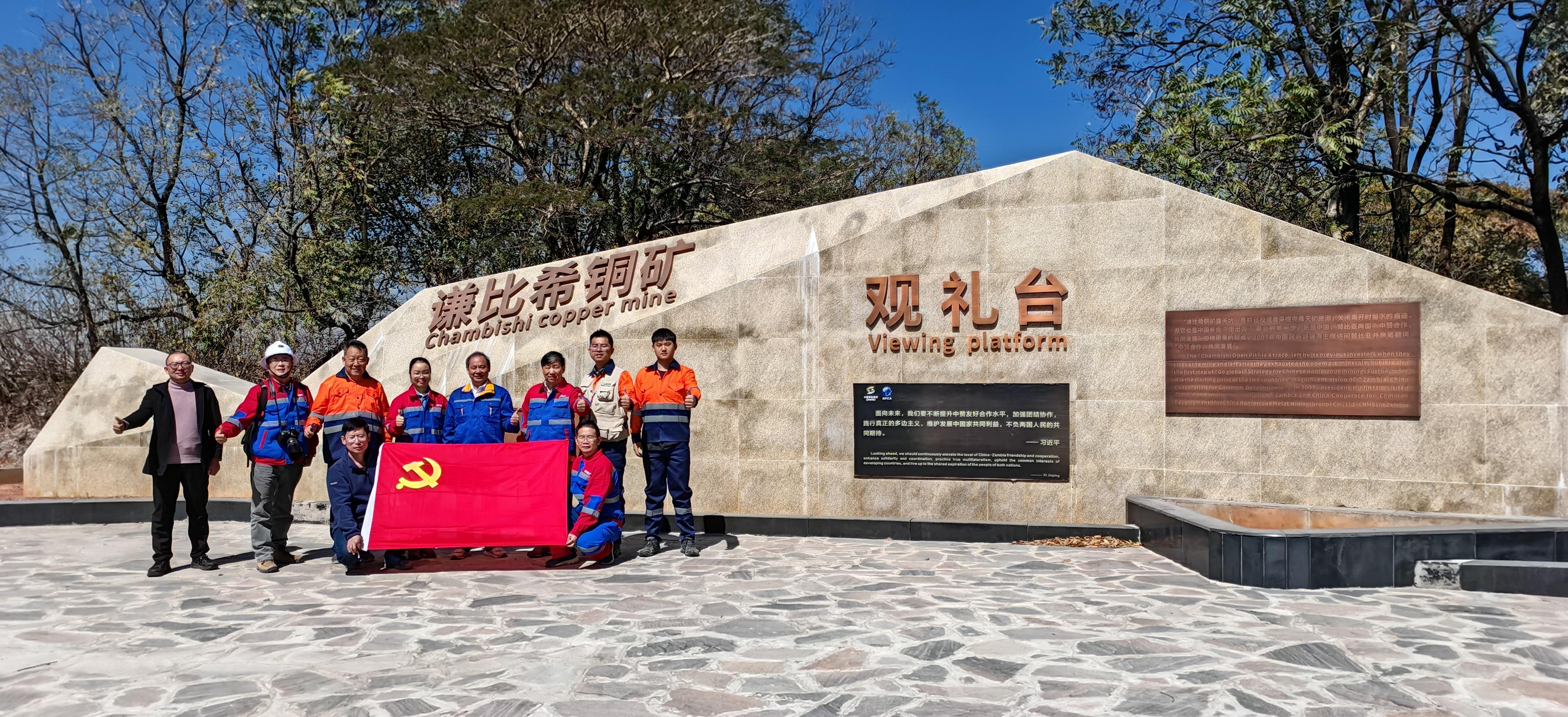 在赞比亚考察期间,临时党小组与中色桂林院赞比亚矿业公司党支部一同参观中赞经贸合作区、赞比亚谦比西铜矿露天坑观礼台和中色卢安夏铜矿,并开展了红色教育党建活动。中赞经贸合作区是我国在非洲设立的第一个境外经贸合作区。中国有色谦比西铜矿是中国-赞比亚两国“中赞合作,共同发展”宏伟愿景的起点。