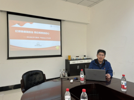杨俊成以“深化党纪学习教育,严明岗位工作纪律”为题讲授专题党课。围绕加快抢占科技制高点核心任务,杨俊成深入阐释了专项工作背景、“三项制度”重要意义、研究所“三项制度”具体要求以及下一步工作计划,结合实际对参会人员进行工作提醒、明确具体要求,希望大家进一步强化工作纪律、凝聚攻关合力、提升管理服务效能,以严明纪律护航科技创新主战场。支部书记姚洁领学中央八项规定精神,从经费管理、公务接待、会议活动、公务出差等方面进行廉政提醒,要求大家强化廉洁纪律、筑牢风险防控屏障,高度重视、防微杜渐,进一步强化规矩意识、凝聚创新动能。