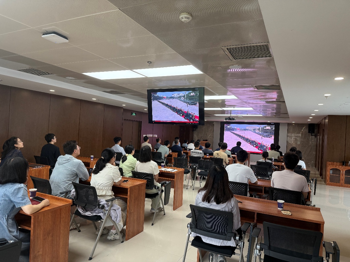 会议结束后,两支部组织全体党员干部集中观看纪念中国人民抗日战争暨世界反法西斯战争胜利70周年阅兵仪式。整齐划一的受阅方阵、先进的现代化装备,充分彰显了国威军威与我国维护世界和平的坚定决心,让在场党员深受震撼与鼓舞。此次观看活动既是一次深刻的爱国主义教育,更是一次精神洗礼,进一步凝聚了奋进共识,坚定了大家为实现中华民族伟大复兴中国梦而不懈奋斗的信心与决心。
