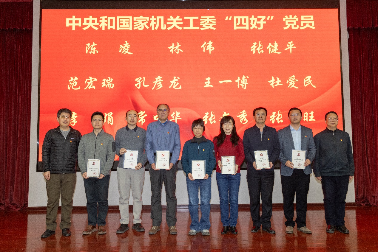 会上研究所党委领导为获评2024年度中央和国家机关工委“四好”党员、“四强”党支部,以及获评研究所2025年度“党建业务融合之星”党支部颁发荣誉牌匾和证书。