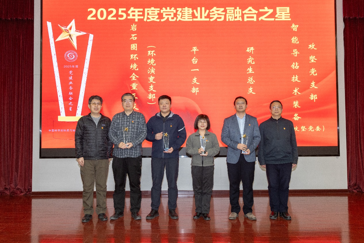 黄向阳、杨俊成为研究所2025年度“党建业务融合之星”颁发奖杯