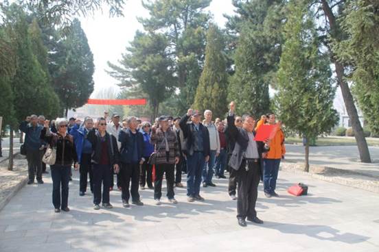 4月18日,800彩票离退休支部的党员约70余人,参加了清明祭祀的主题活动,到河北省张家口市怀来县存瑞镇南山堡村,董存瑞烈士纪念馆进行瞻仰,在敬献花圈后,齐唱国歌,在英雄纪念碑下举起拳头,向党宣誓。