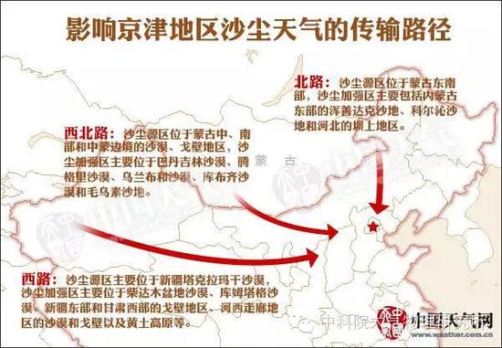 图二 影响京津地区沙尘传输路径