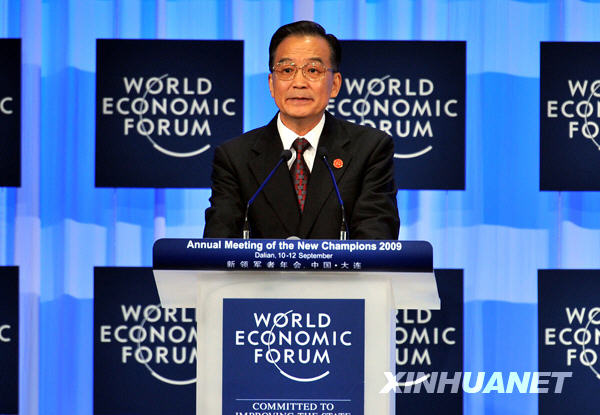 9月10日下午,世界经济论坛第三届新领军者年会(2009年大连夏季达沃斯年会)在大连世界博览广场开幕,国务院总理温家宝出席开幕式并致辞。新华社记者谢环驰摄