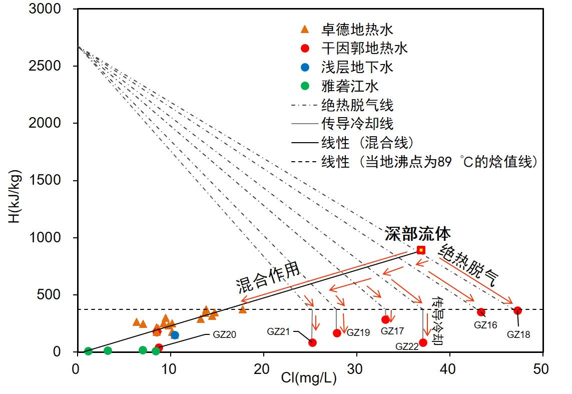 高温地热流体由于经历了强烈的水岩相互作用或受到岩浆挥发分的影响,通常具有高矿化度的流体地球化学特征,且地热水呈Cl-Na型、SO4-Na型。然而,在喜马拉雅东...