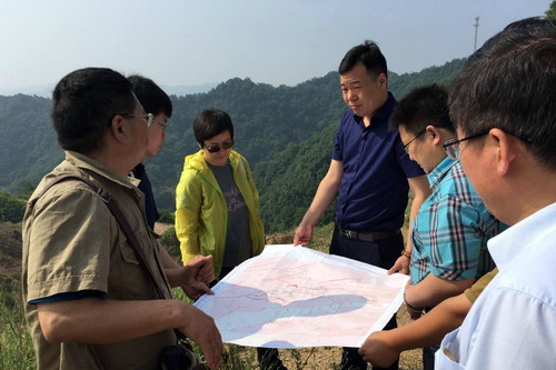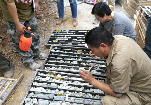 72日,在河南省有色金属地质矿产局相关专家的陪同下,底青云率队前往豫西地区申家窑矿区和寺家沟-宽平矿区进行实地踏勘对矿区的地形、露头矿和钻探岩芯等作了详细的了解,并对成矿规律进行现场讨论,最终选定地球物理新技术探测示范剖面位置。