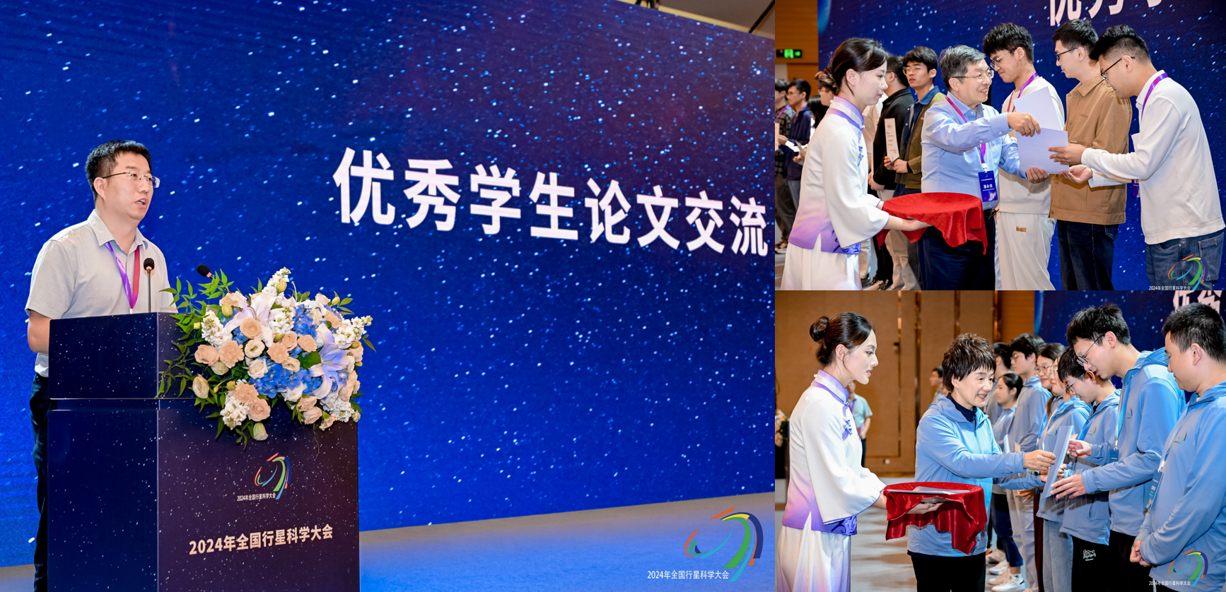 本届大会评选出了46篇优秀学生论文,我所研究生谭小易、陈薪硕等获得优秀论文称号。会议确定下一届全国行星科学大会将于2026年由中山大学、南方科技大学、香港大学共同承办。