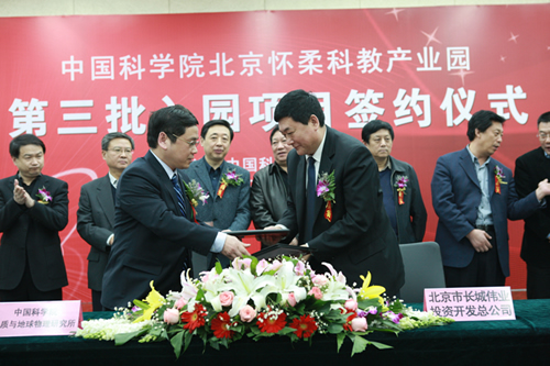 三月十一日下午,中国科学院北京怀柔科教产业园第三批入园项目签约仪式在雁栖经济开发区管委会举行。签约仪式上,赵平副所长代表研究所向北京分院和怀柔区的有关领导介绍了建立怀柔地球物理仪器研发与技术应用基地的目的意义、建设目标、建设规模、800彩票概况和入园科研项目等基本情况,并与受托方签署了意向用地协议。协议规定,怀柔雁栖经济开发区拟有偿提供100.82亩土地用于建立怀柔地球物理仪器研发与技术应用基地,其中建设用地面积81.45亩,代征道路用地面积19.37亩;研究所将在规定的时间内向雁栖经济开发区管委会提交项目可行性研究报告及建设方案。经规划等部门审核后,双方将正式签订《土地委托开发补偿合同》并开始实施分期建设工程。