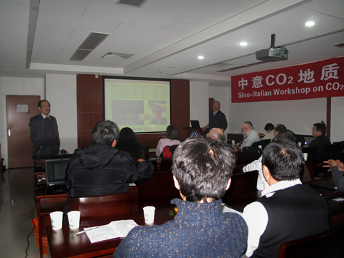 意大利代表团由意大利科学院环境地质与地质工程研究所所长G..M. Zuppi教授、罗马大学及意大利科学院地质科学与地球资源研究所专家组成。意方代表在发言和讨论中介绍了意大利及欧洲CO2地质封存研究现状,并分别就意大利及欧洲土壤气体的监测、制图、数据库及其与意大利的火山、地热、活动构造的关系、环境安全评价指标、CO2地质封存的地球化学模拟等问题作了精彩的学术报告。意方就CO2地质封存现场的土壤气体监测提出了合作意向,受到中方欢迎。双方对现场条件进行了深入细致的讨论,并赴天津进行了联合野外考察,讨论了土壤气体监测的方案。