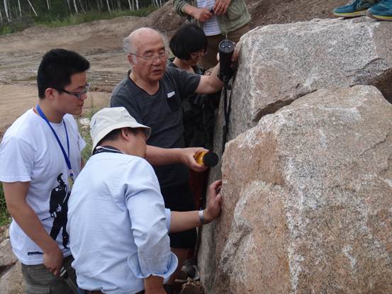 7月28日至8月5日,在秦克章研究员陪同下,石原舜三先生实地考察了我国东北新发现的两处超大型斑岩钼矿床——黑龙江伊春鹿鸣斑岩钼矿和加格达奇岔路口斑岩钼矿。这两个矿床分别属于低氟型和高氟型斑岩钼矿,它们在岩浆岩特征、围岩蚀变分带、矿化特征和成矿地质背景等方面存在一定差异,但成矿岩体有一定相似性,磁化率较高,同属“磁铁矿系列-I型”花岗岩。在野外地质考察过程中,石原舜三先生围绕“花岗岩与成矿”这一主题,与我所科研人员、中铁资源公司鹿鸣钼矿、黑龙江有色706队、金欣矿业公司技术人员等深入探讨。