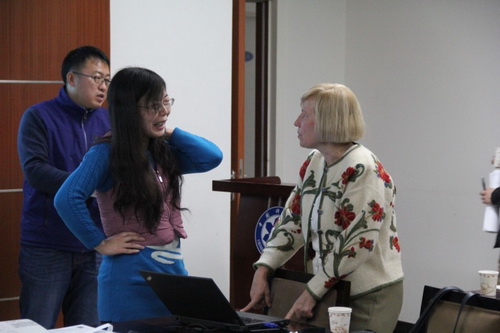 报告会后李娟研究员、田小波研究员继续同Artemieva教授进行深入的交流