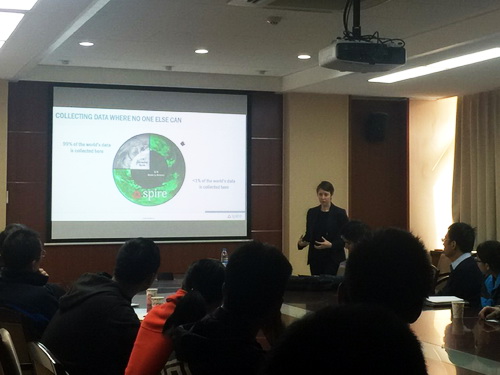 Theresa在地3楼518会议室作了题为《Spire 公司 100 颗小卫星掩星探测星座:下一代天气与空间天气数据》的报告。报告主要介绍了Spire公司、卫星的商业运作、数据及使用政策、及探讨与中国同行的互动合作方式。不少师生纷纷就报告中的一些问题和Theresa展开热烈讨论。