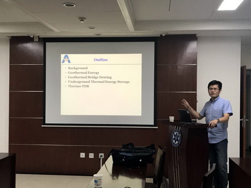 页岩气与地质工程重点实验室祁生文研究员邀请,美国德州大学阿灵顿分校University of Texas at Arlington)于新豹博士于524日在我所进行学术交流并作了题为“Use of Geothermal Energy for Bridge Deicing”的学术报告。