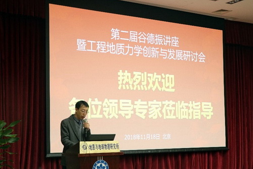 刘羽处长在致辞中指出,谷德振讲座的宗旨在于工程地质力学的学科理论、学科领域以及老一辈工程地质学家精神的继承和发展,指出工程地质力学的学科发展要紧扣生态环境这一时代脉搏,发挥工程地质学科的特长,解决国民经济发展过程中的重大工程地质问题,在继承中发展、在传承中创新。