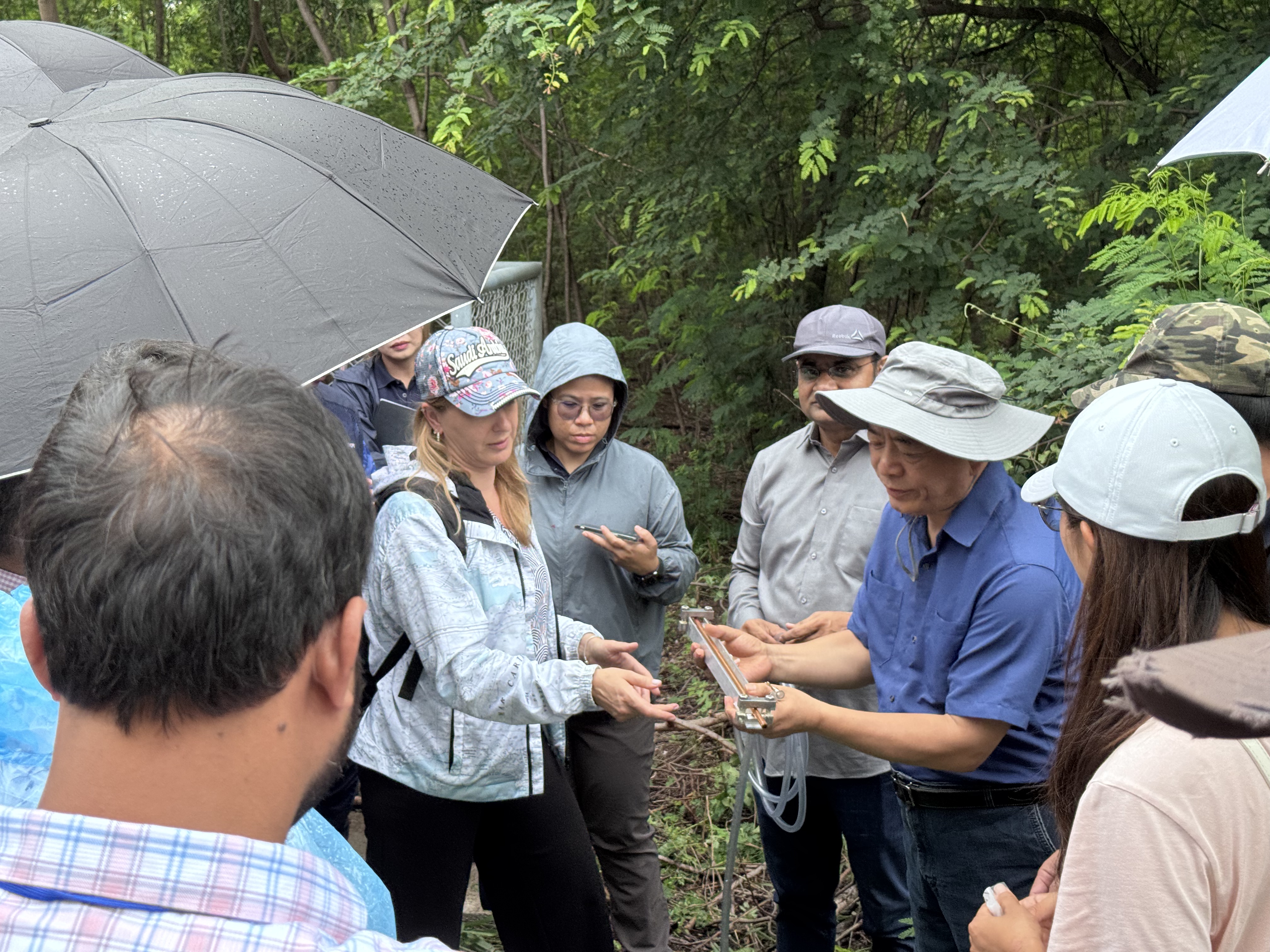 培训班于2025年7月21至25日在泰国曼谷举办。庞忠和主讲地下水惰性气体及其定年技术,内容包括:惰性气体成分、放射性惰性气体氚-氦,氪-81,氪-85,氩-39,氡-222等在地下水中的成因、赋存与分布特征,测试技术、采样方法、定年数据解释、不同场景下的应用,并现场演示了铜管采样方法、视频讲解了膜分离提气采样技术。庞忠和运用中国北方干旱半干旱区塔里木盆地、河西走廊、关中盆地、华北平原等地区地下水演化研究的应用案例,联系实际讲解深入浅出,内容丰富,课堂气氛热烈,受到来自14个国家学员的热烈欢迎。