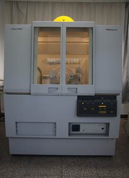 1) 帕纳克X′Pert PRO X射线衍射仪 位置:地2楼1007 简介:本仪器为荷兰PANalytical公司制造,2011年6月完成安装调试,已验收并投入使用。主要用于新生代沉积物和土壤的粘土矿物分析,也可开展其它样品的物相分析工作。最大管压:60kV,最大管流:60mA,最大功率:3kW(Cu靶),角度重现性: 0.0001度,扫描方式: / 扫描方式,探测器:X'Celerator 超能探测器。